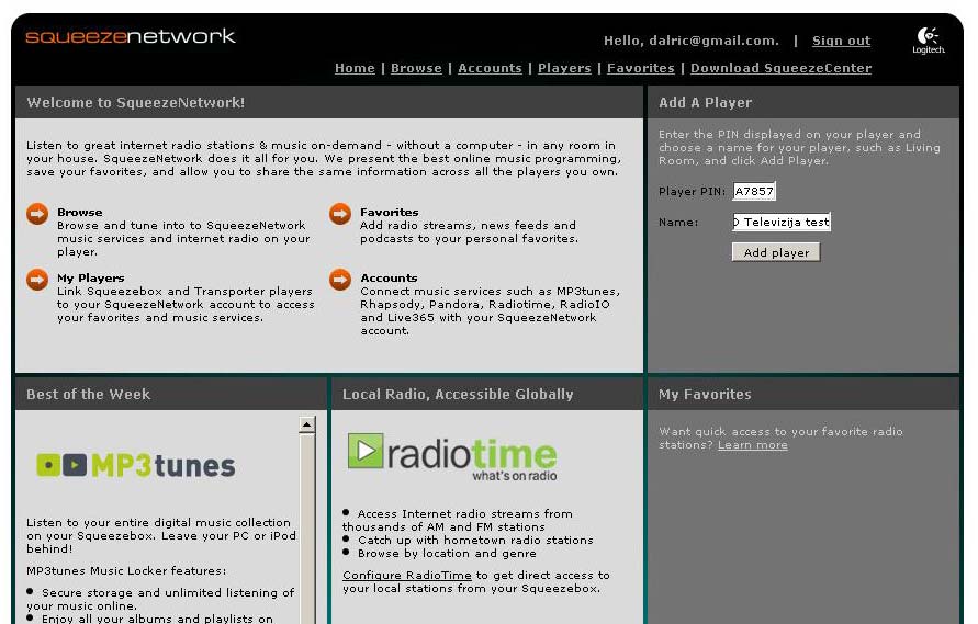 Nakon što sve proradi i SqueezeBox postane sastav vaše kućne mreže, slijede još dva koraka koja morate obaviti – prvi jest instalacija SqueezeBox centra koji će Vam omogućiti streaming glazbe s vašeg računala kao i definiranje ostalih postavki (pluginovi, RSS pretplate, Podcastovi,…), te otvaranje SqueezeNetwork računa koji će vam omogućiti slušanje tisuća internet radio stanica. Za otvaranje SqueezeNetwork računa potreban će vam biti PIN kontrolera, a koji dobivate nakon što povežete isti na receiver i vašu mrežu.