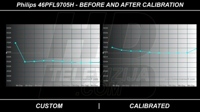 Prilikom kalibracije Philips nas je iznenadio preciznošću kontrola koje nudi za ugađanje svjetline, kontrasta i vrijednosti game, a tu je i “Tint” funkcija koja uz tri generička predloška nudi i ugađanje primarnih boja. Zahvaljujući ovim opcijama televizor smo kalibrirali u rekordnom roku, a posebno nas je iznenadila “Tint” funkcija kojom smo balans bijele boje vrlo uspješno smanjili deltaE pogreške duž cijelog spektra, a posebno u rasponu od 50 do 90% osvjetljenja. Čak su četiri točke pale ispod vrijednosti 1 za deltaE pogreške, što je izvrstan rezultat,a sve bez upotrebe RGB Gain i Ofset kontrola, a kamoli 10p IRE ugađanja.