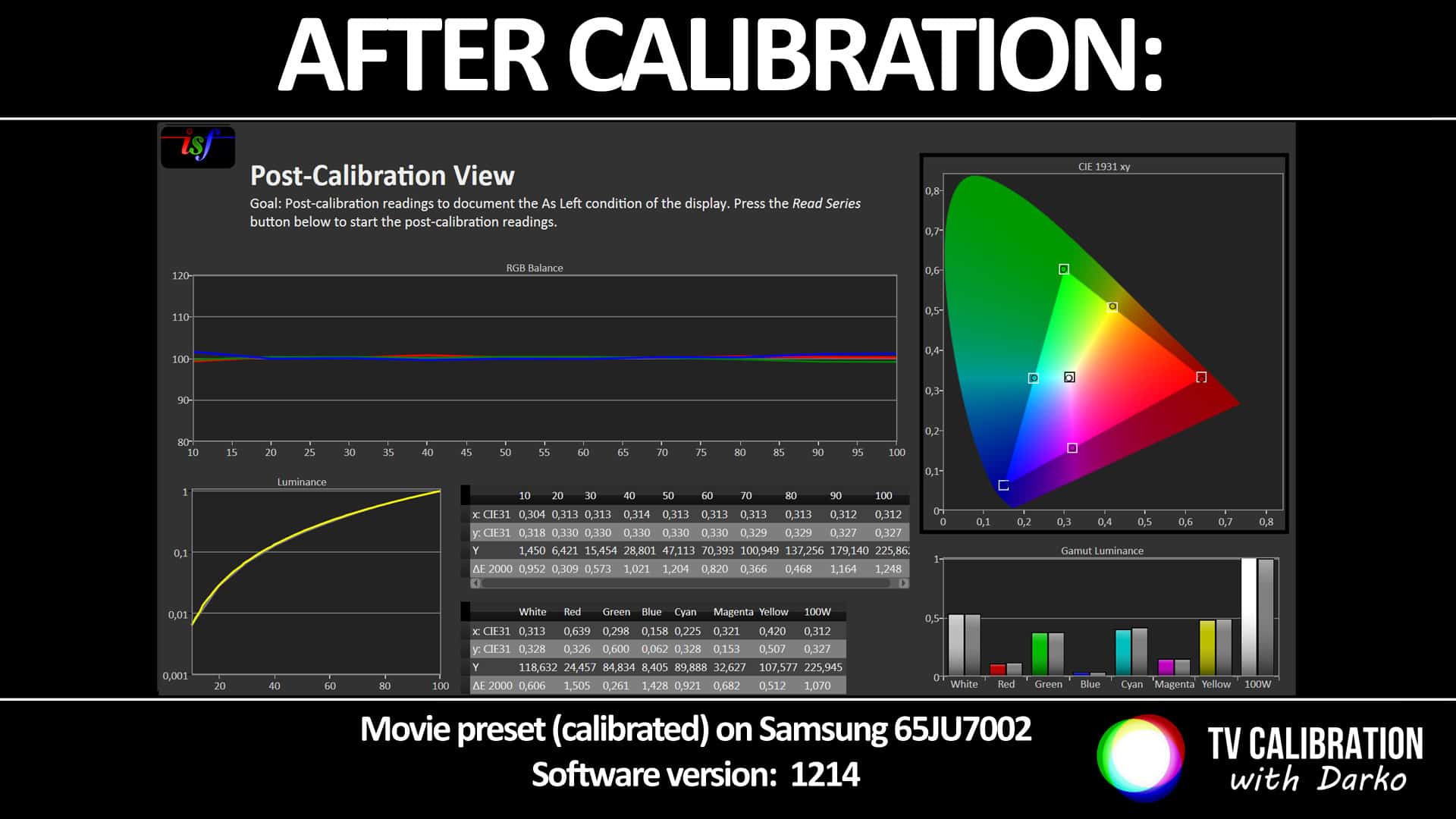 S obzirom na dobre performanse već u startu, s kalibracijom smo bili brzo gotovi i postigli smo izvrstan rezultat. Sva veća odstupanja u balansu bijele boje, gammi i rasponu boja smo uspješno otklonili, što je vidljivo na slici dolje: